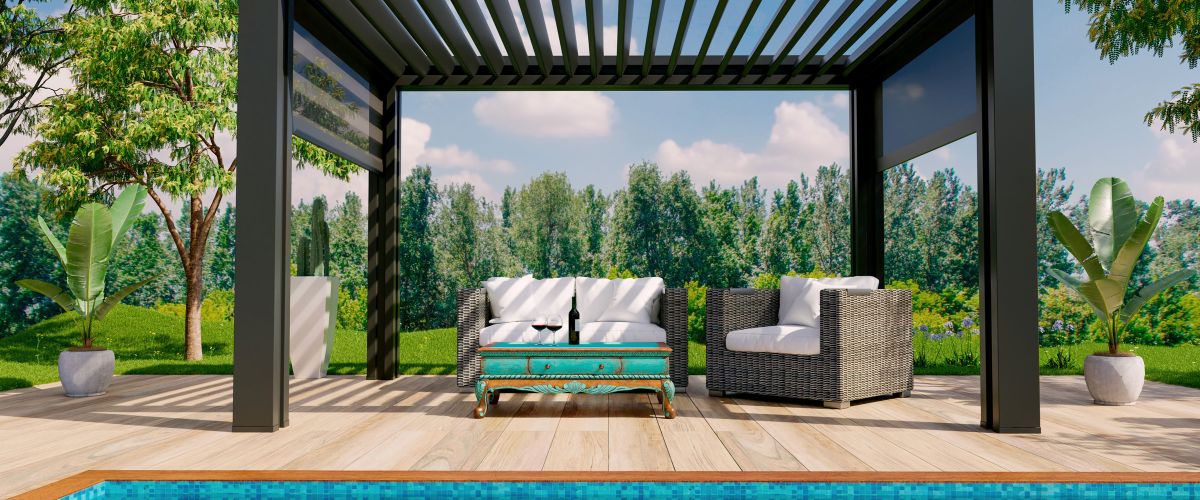 Très esthétique et modulable, le système de pergola bioclimatique avec ses lames orientables, vous permet de profiter de votre extérieur plus longtemps par tous les temps – à l’abri du soleil ou de la pluie.